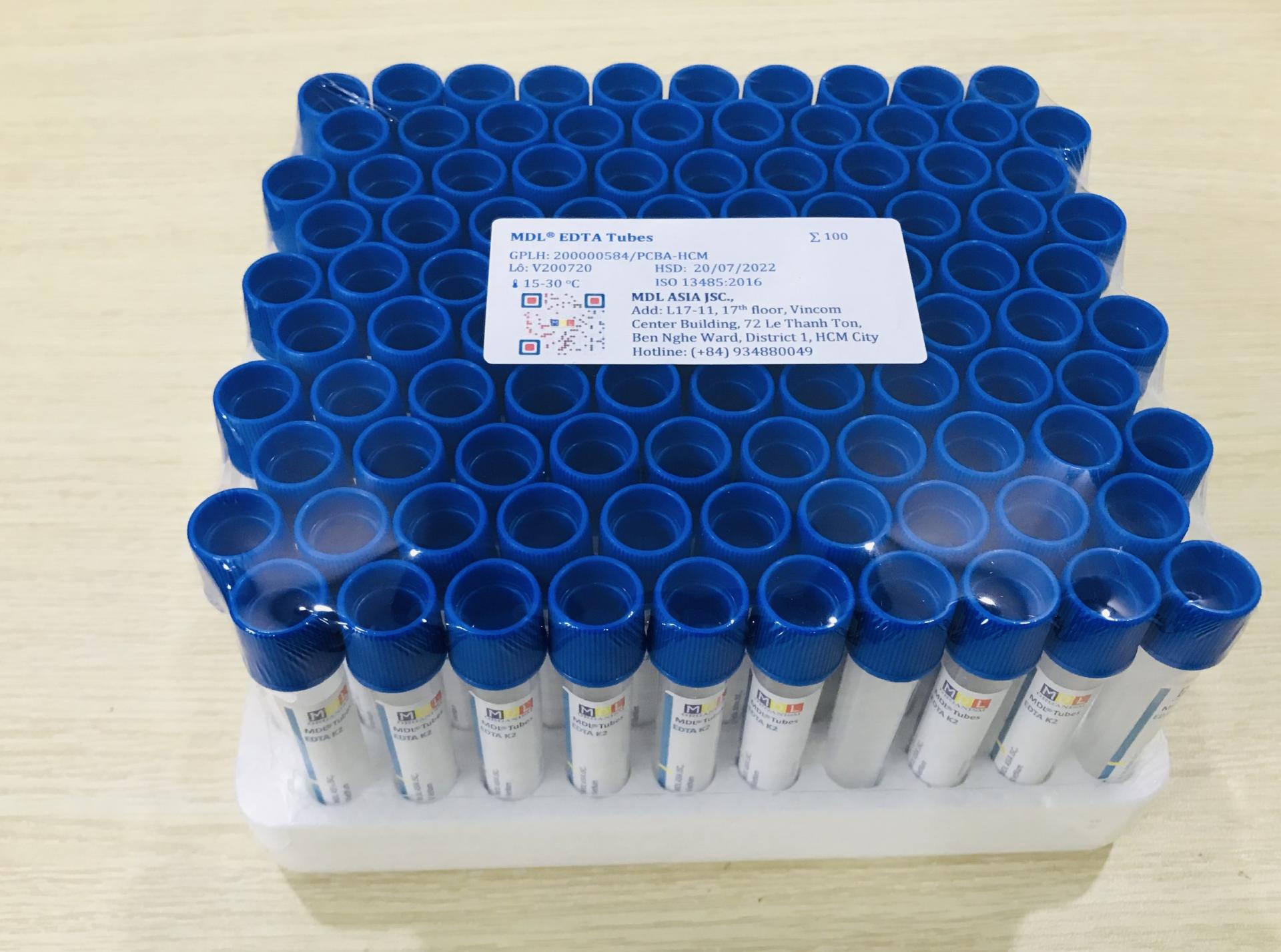 Ống nghiệm chứa máu có chất kháng đông EDTA K2, dùng cho xét nghiệm công thức máu, HbA1C.