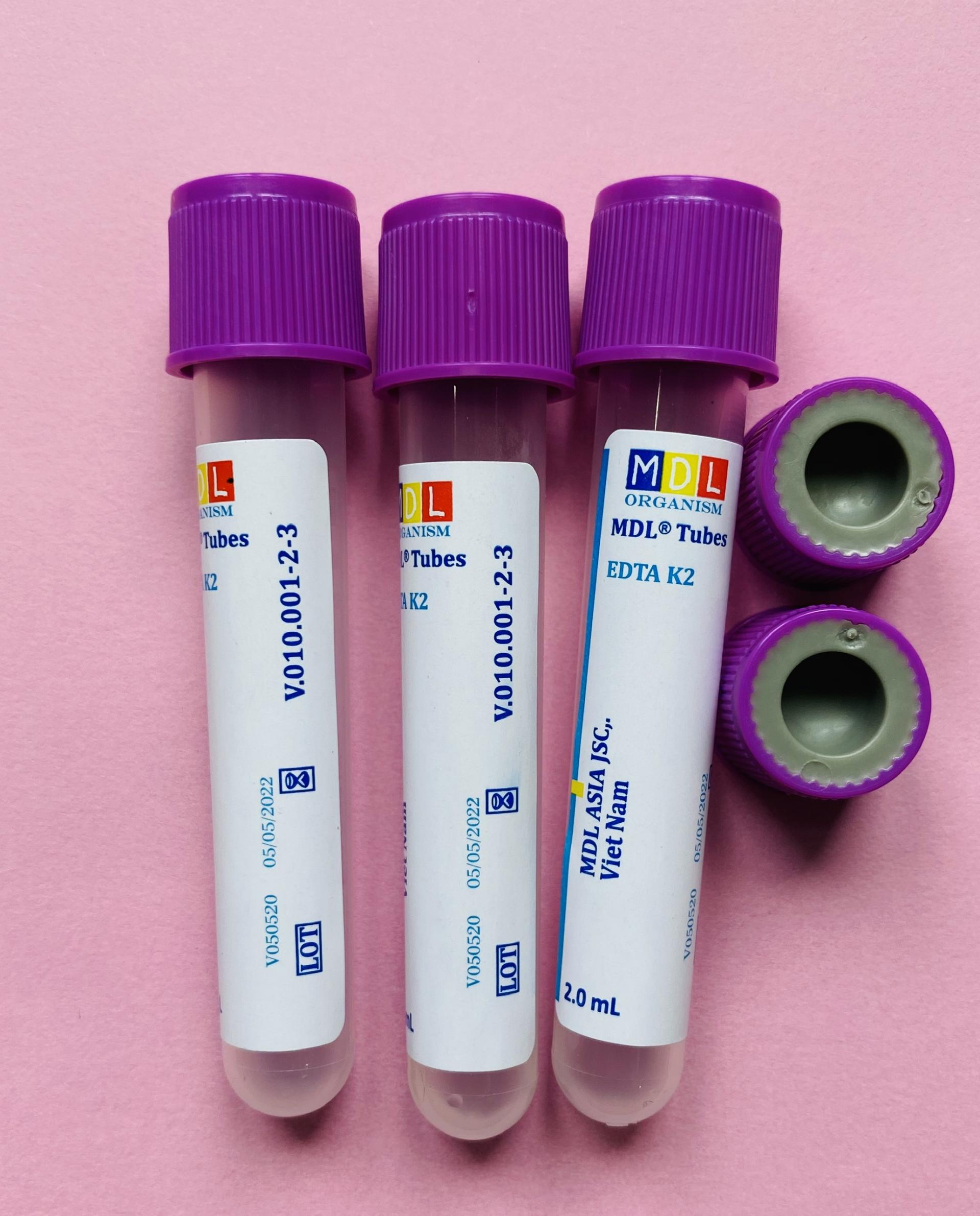 Ống nghiệm chứa máu có chất kháng đông EDTA K2, dùng cho xét nghiệm công thức máu, HbA1C
